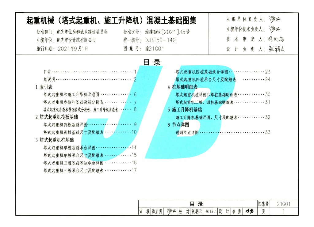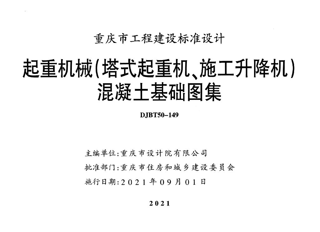 渝21G01起重机械(塔式起重机、施工升降机)混凝土基础图集