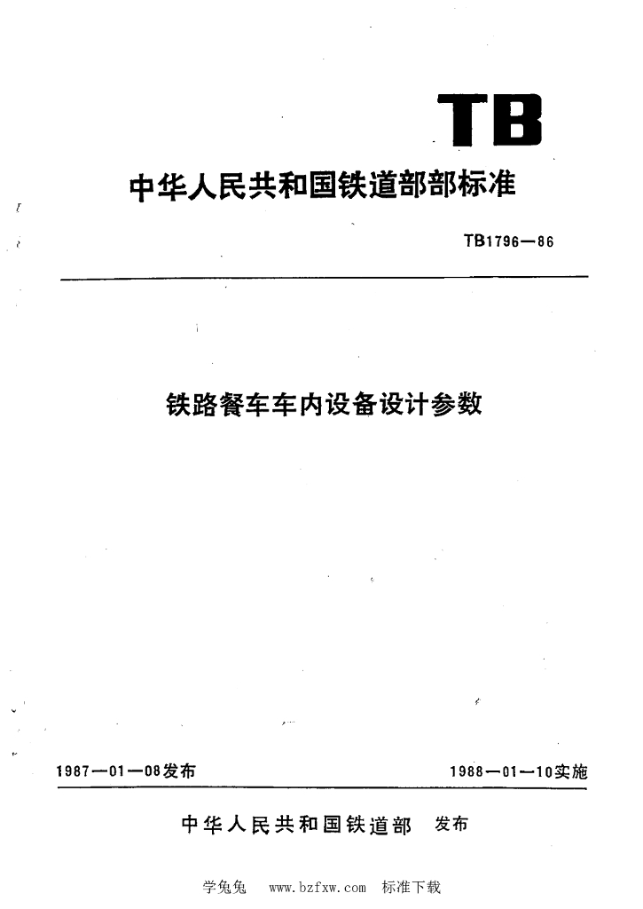 TB/T 1796-1986 铁路餐车车内设备设计参数