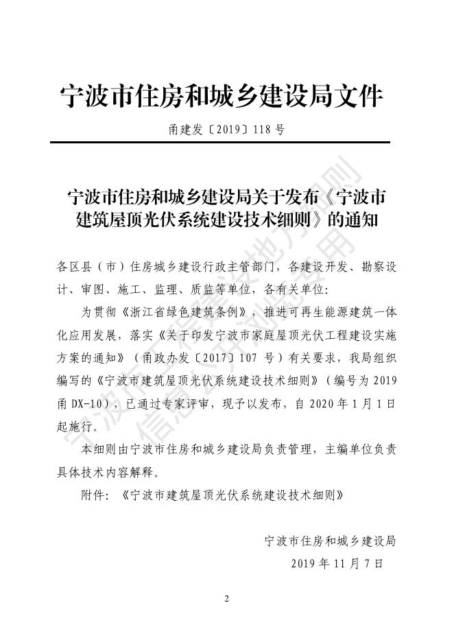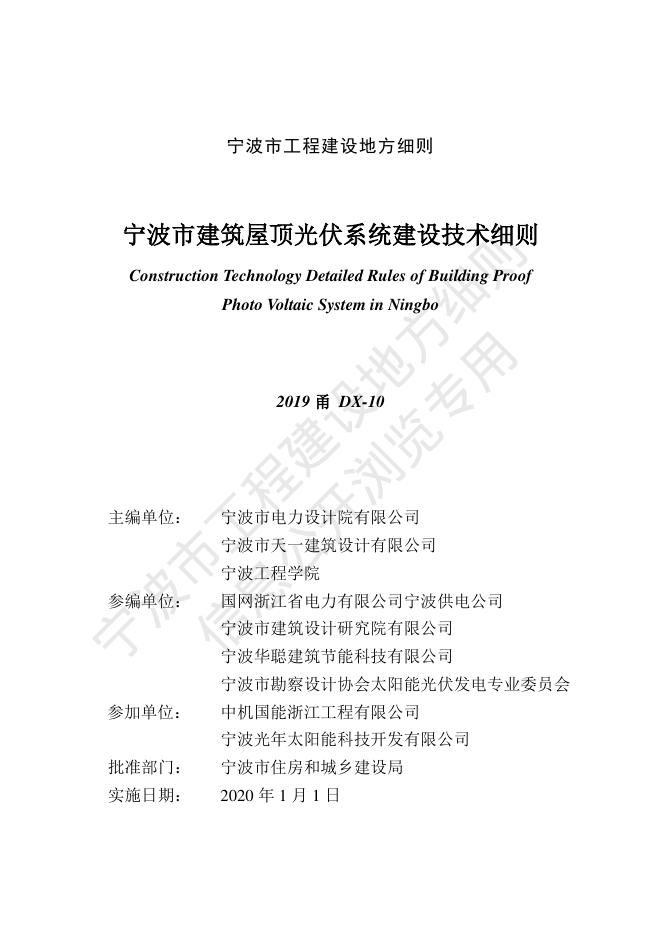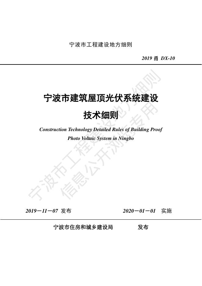 2019甬DX-10 宁波市建筑屋顶光伏系统建设技术细则