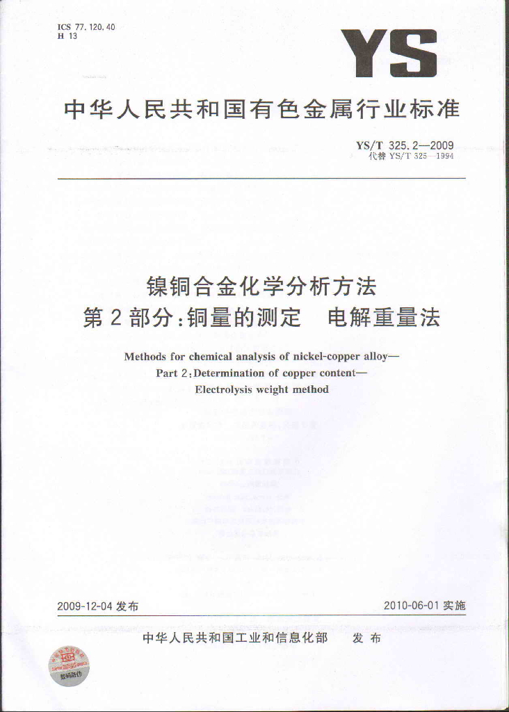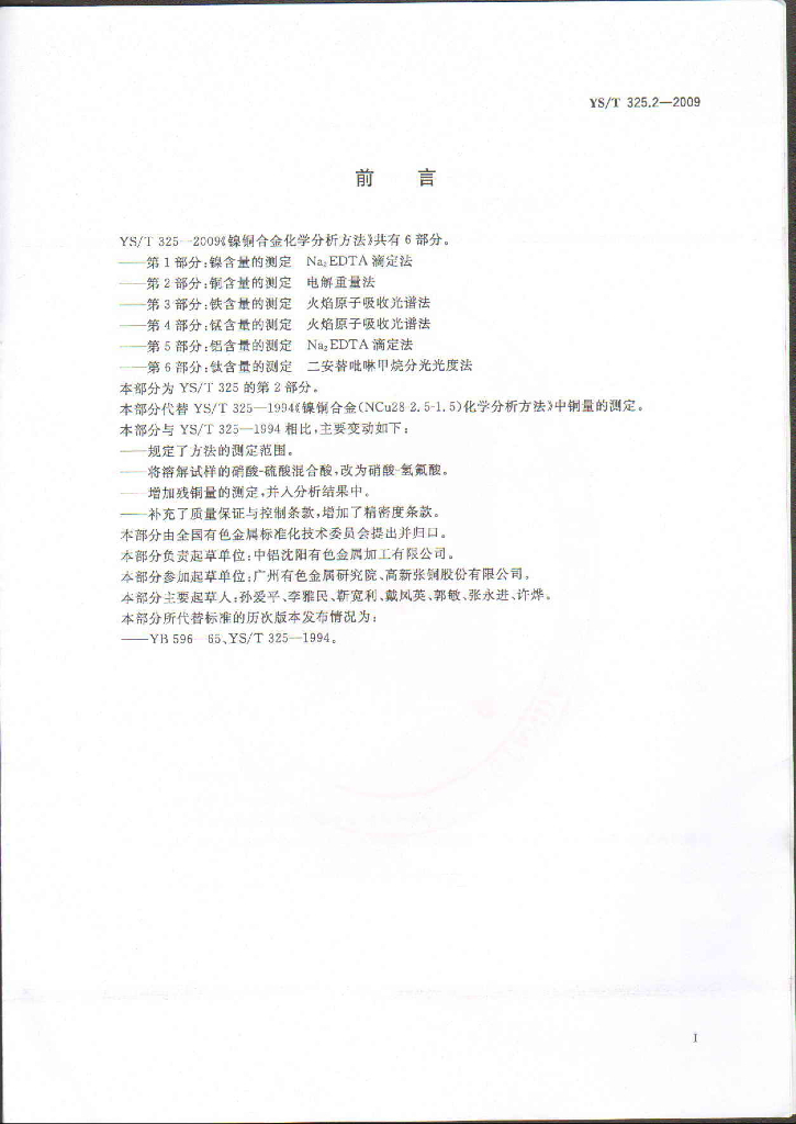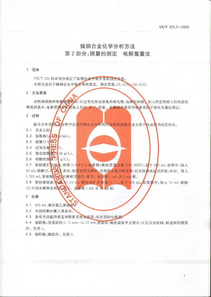 YS/T 325.2-2009 镍铜合金化学分析方法 第2部分:铜量的测定 电解重量法