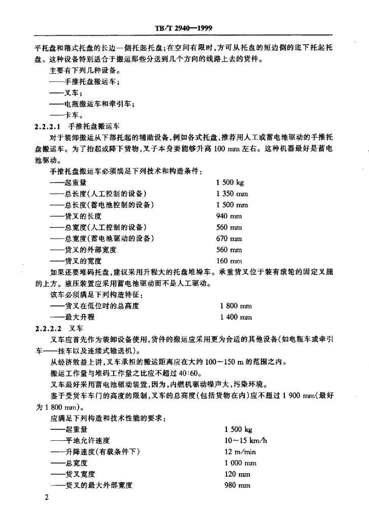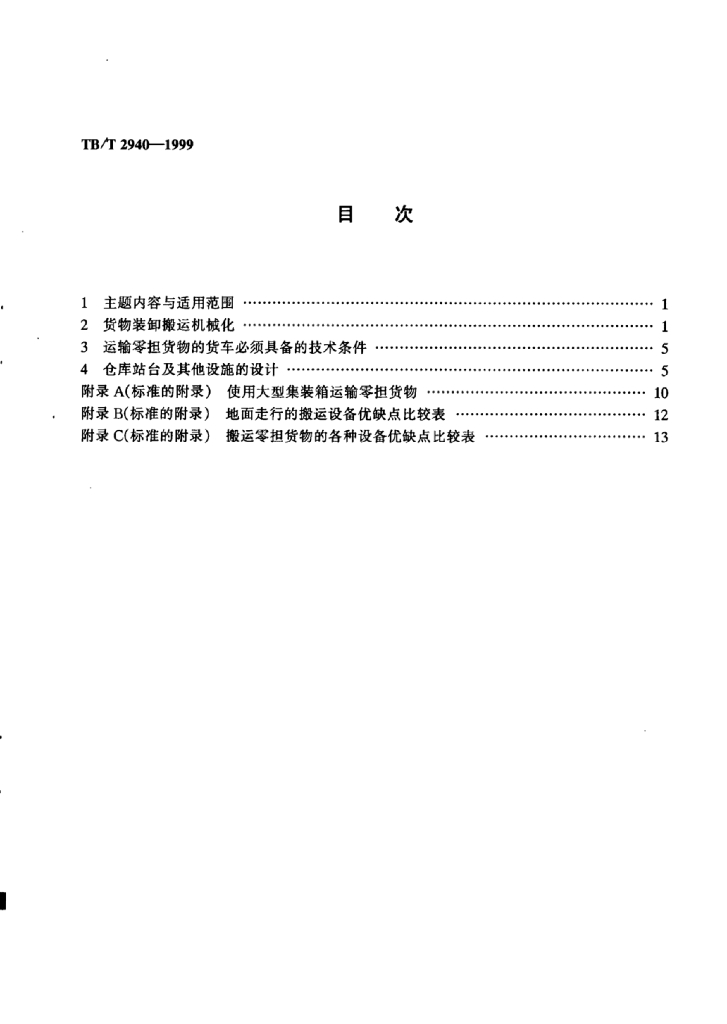 TB/T 2940-1999 零担装卸搬运设施的技术要求