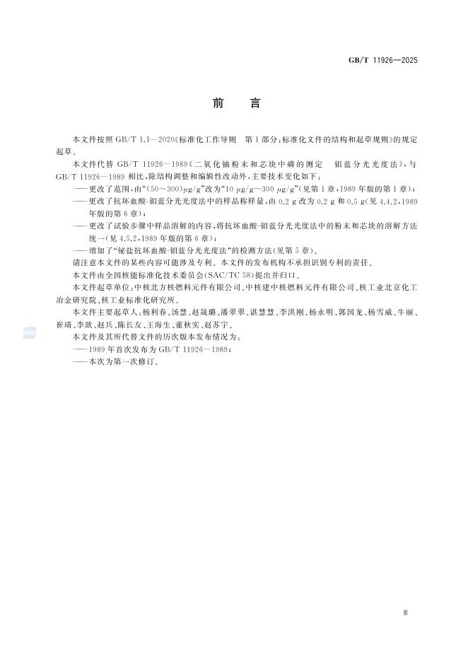 GB/T 11926-2025 二氧化铀粉末和芯块中磷的测定 钼蓝分光光度法