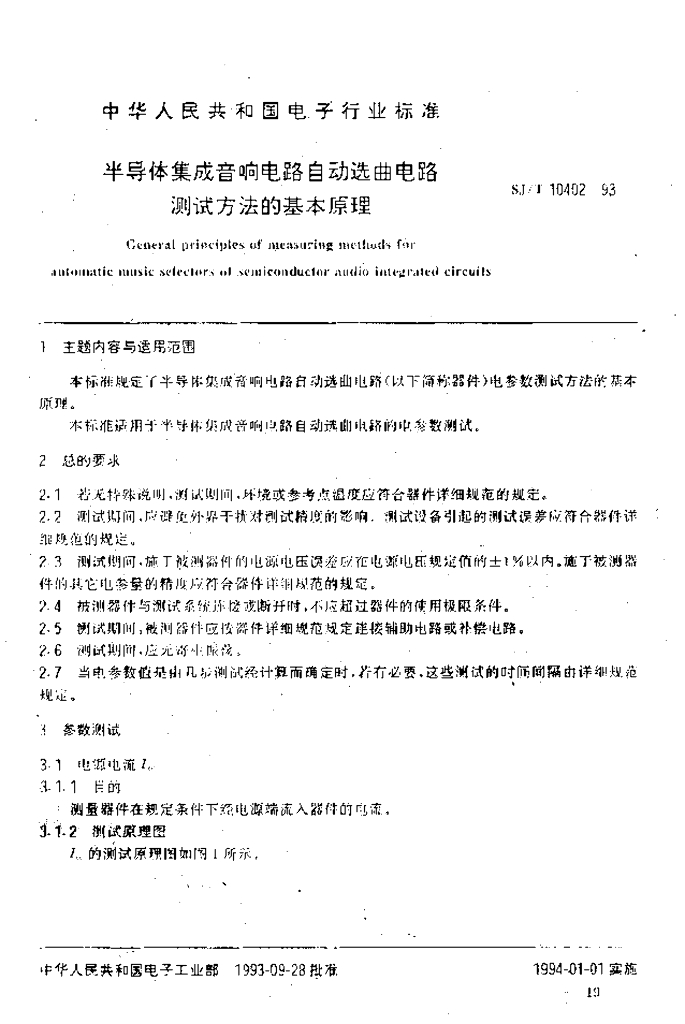 SJ/T 10402-1993 半导体集成音响电路自动选曲电路测试方法的基本原理
