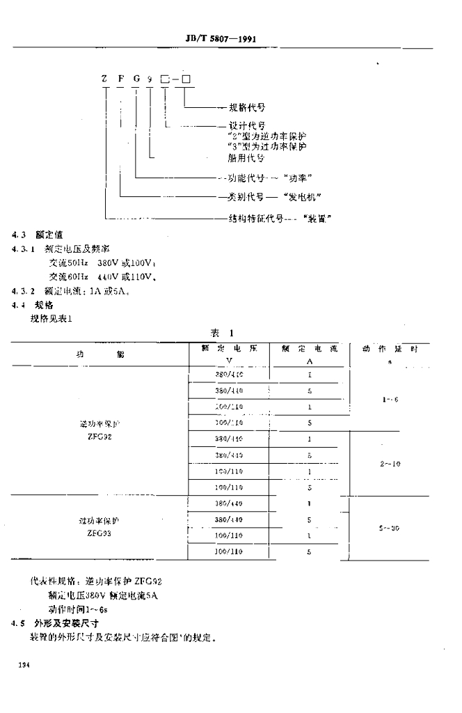 JB/T 5807-1991 ZFG92、93型船用有功功率监视装置