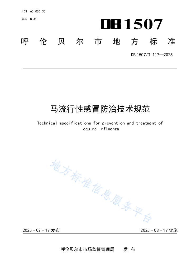 DB1507/T 117-2025 马流行性感冒防治技术规范