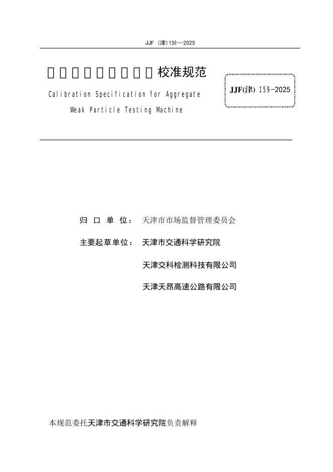 JJF(津)159-2025 集料软弱颗粒试验机校准规范