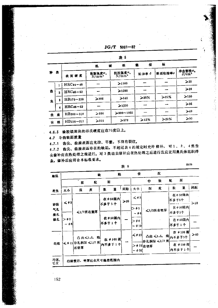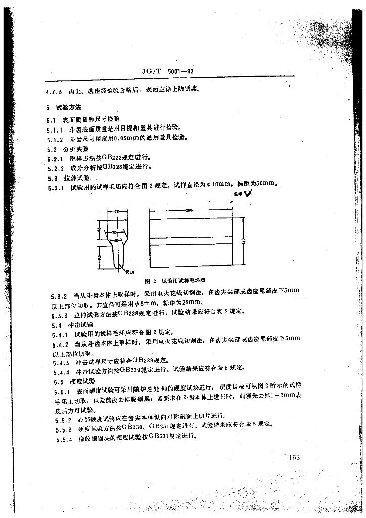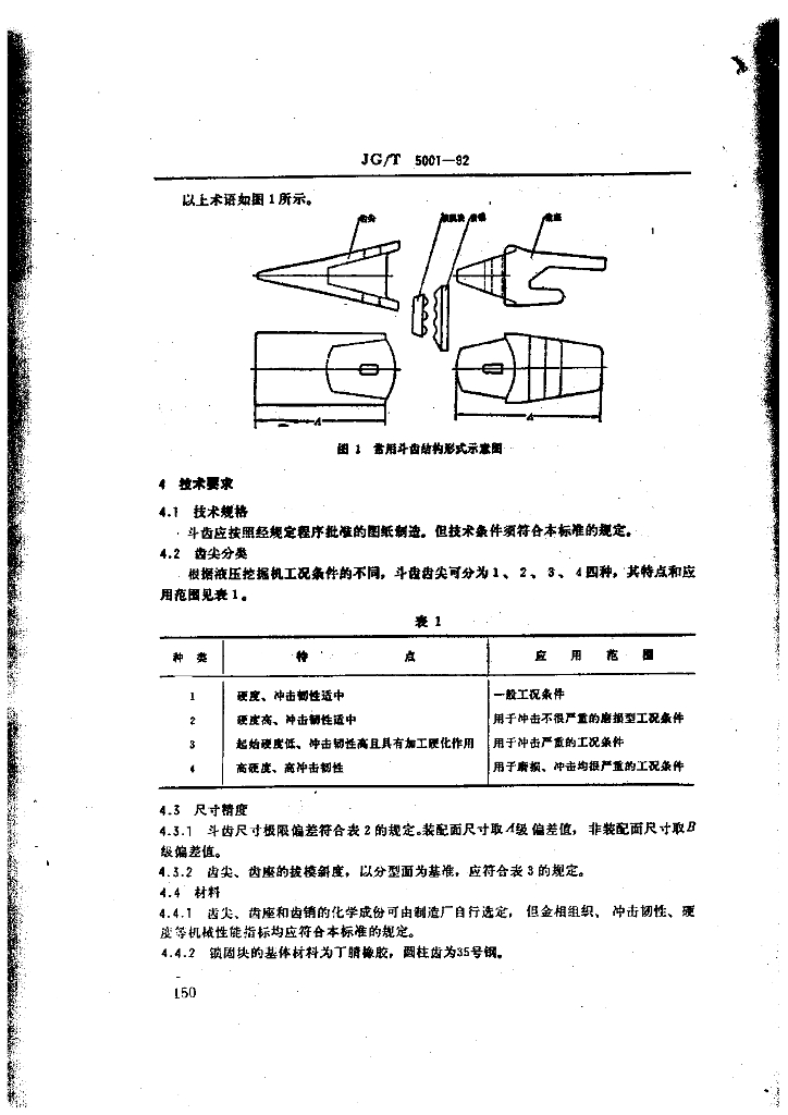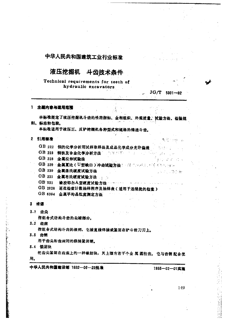 JG/T 5001-1992 液压挖掘机 斗齿技术条件