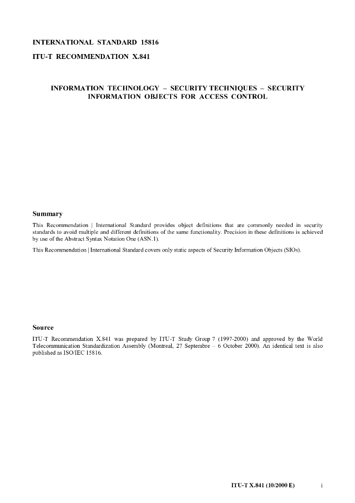 ITU-T X.841-2000 信息技术 安全技术 安全信息目标