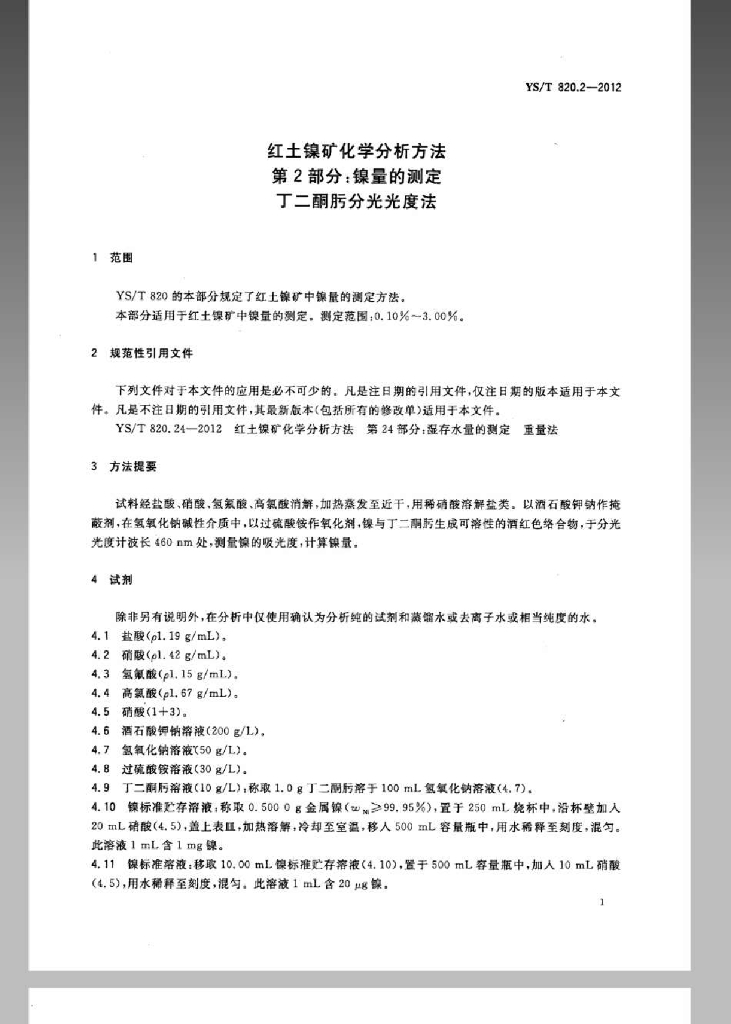 YS/T 820.2-2012 红土镍矿化学分析方法 第2部分:镍量的测定 丁二酮肟分光光度法