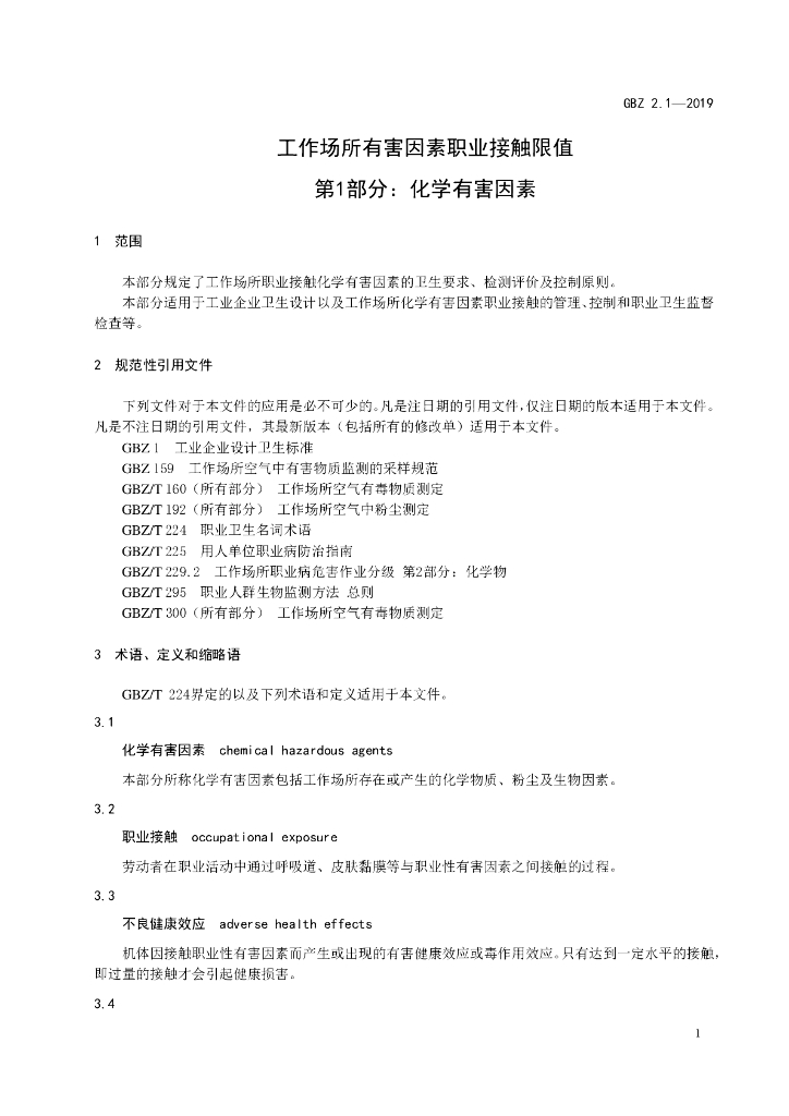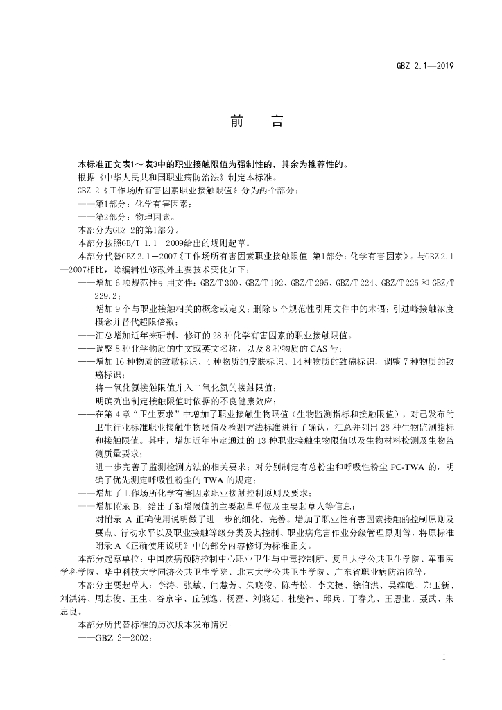 - 代替标准:GBZ 2.1-2007