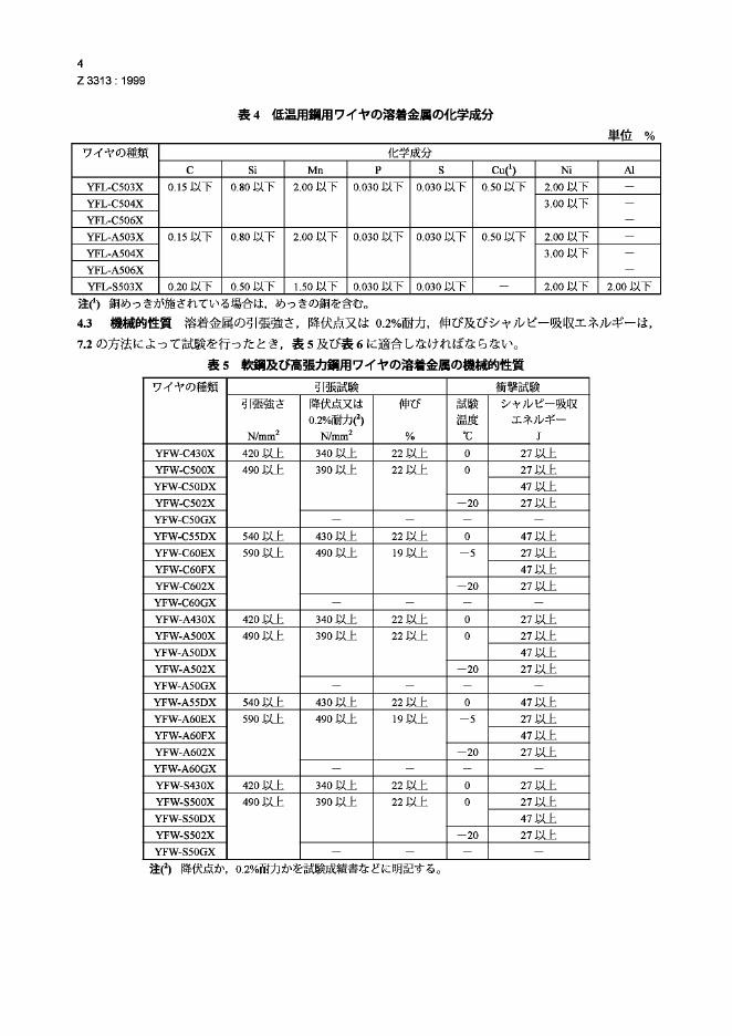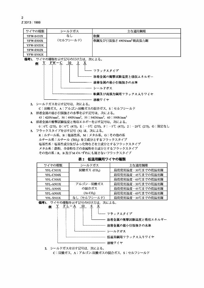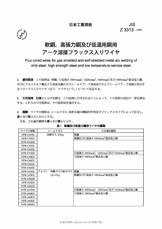 JIS Z3313-1999 低碳钢、高强度钢和低温钢用气保护和自保护金属电弧焊用管状焊丝