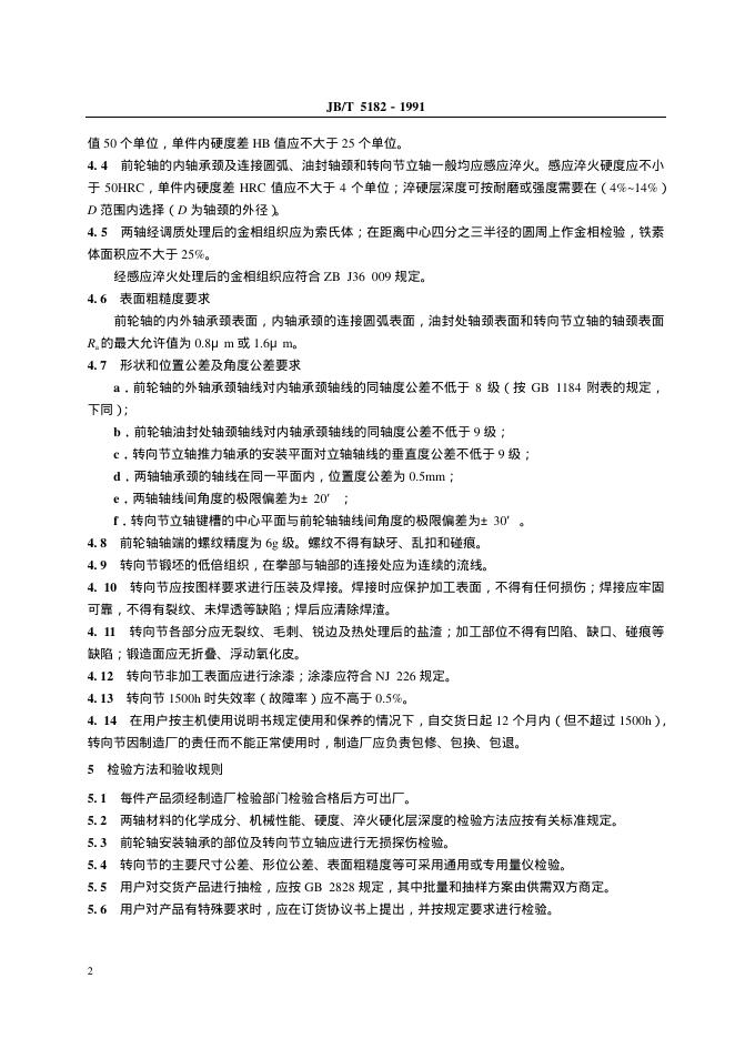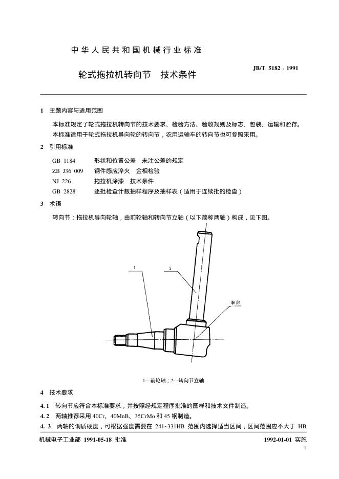 JB/T 5182-1991 轮式拖拉机转向节 技术条件