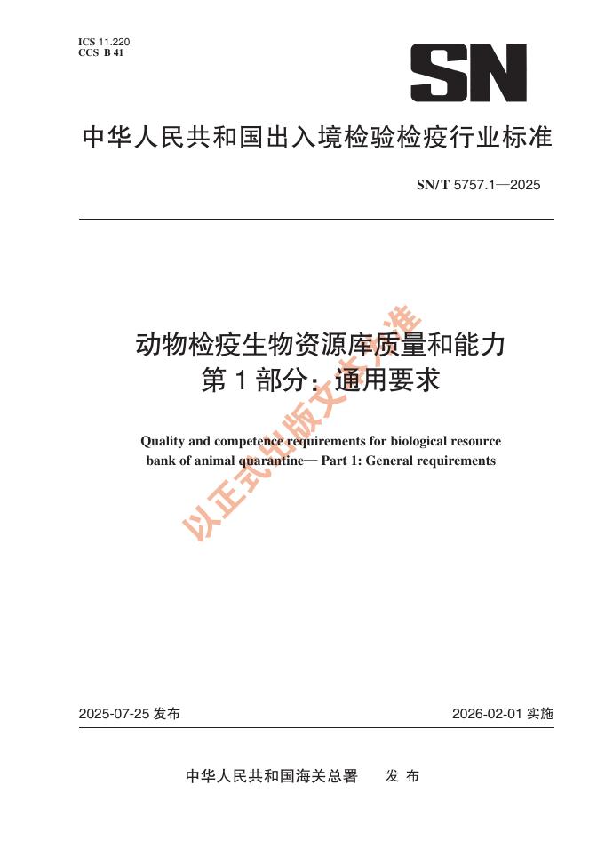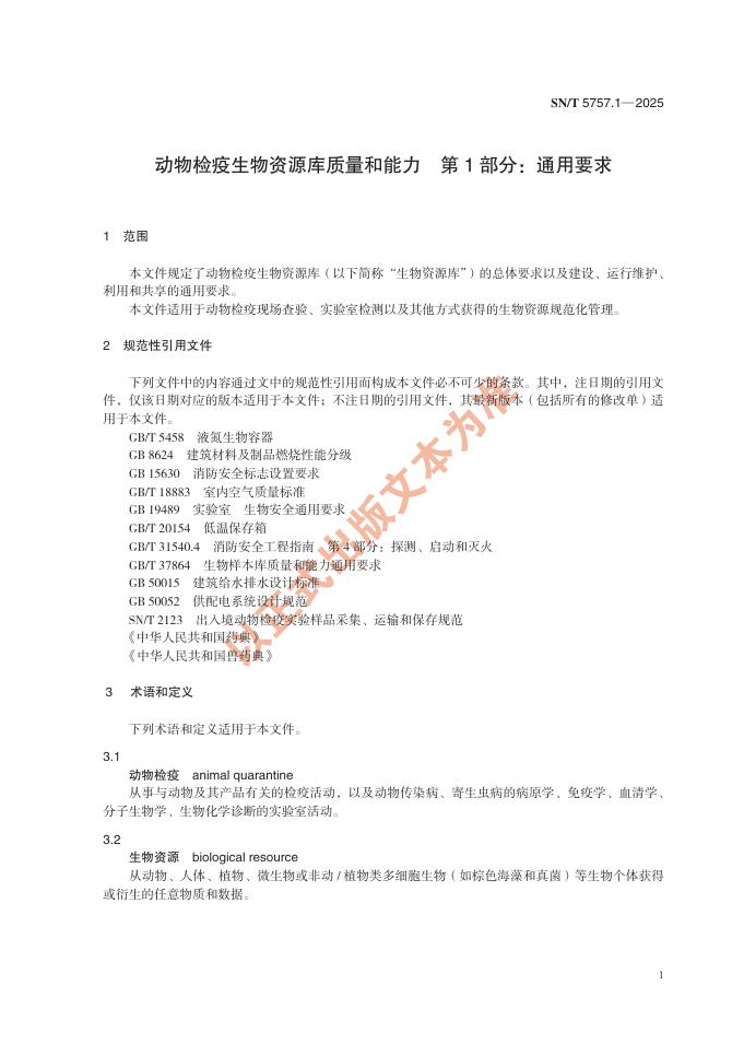 SN/T 5757.1-2025 动物检疫生物资源库质量和能力 第1部分:通用要求
