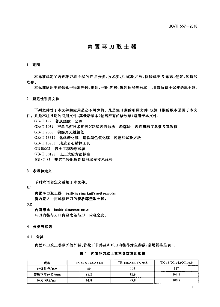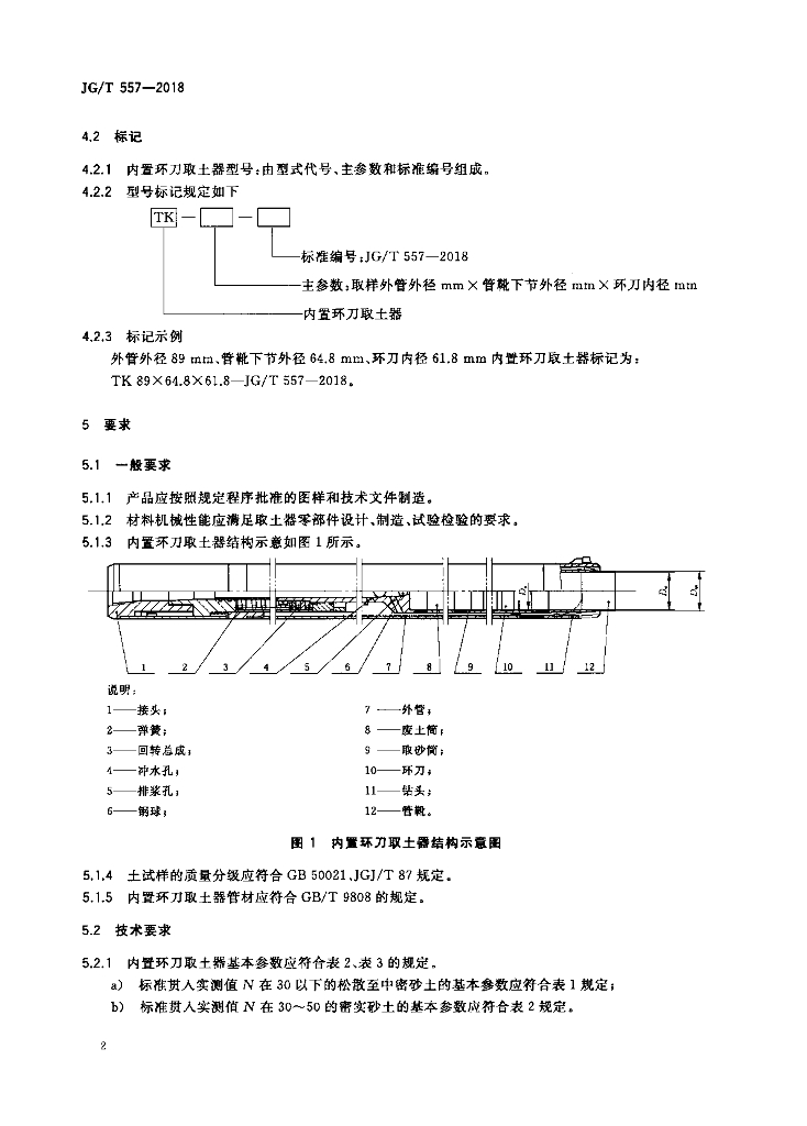 JG/T 557-2018 内置环刀取土器