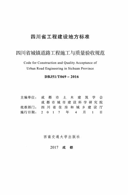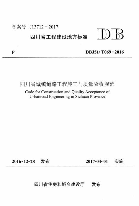 DBJ51/T 069-2016 四川省城镇道路工程施工和质量验收标准