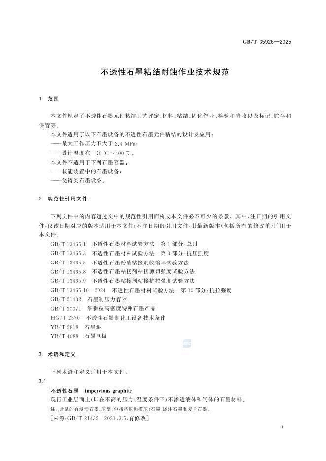 GB/T 35926-2025 不透性石墨粘结耐蚀作业技术规范