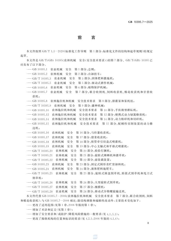 GB 10395.7-2025 农业机械 安全 第7部分:联合收割机、饲料收获机、棉花收获机和甘蔗收获机