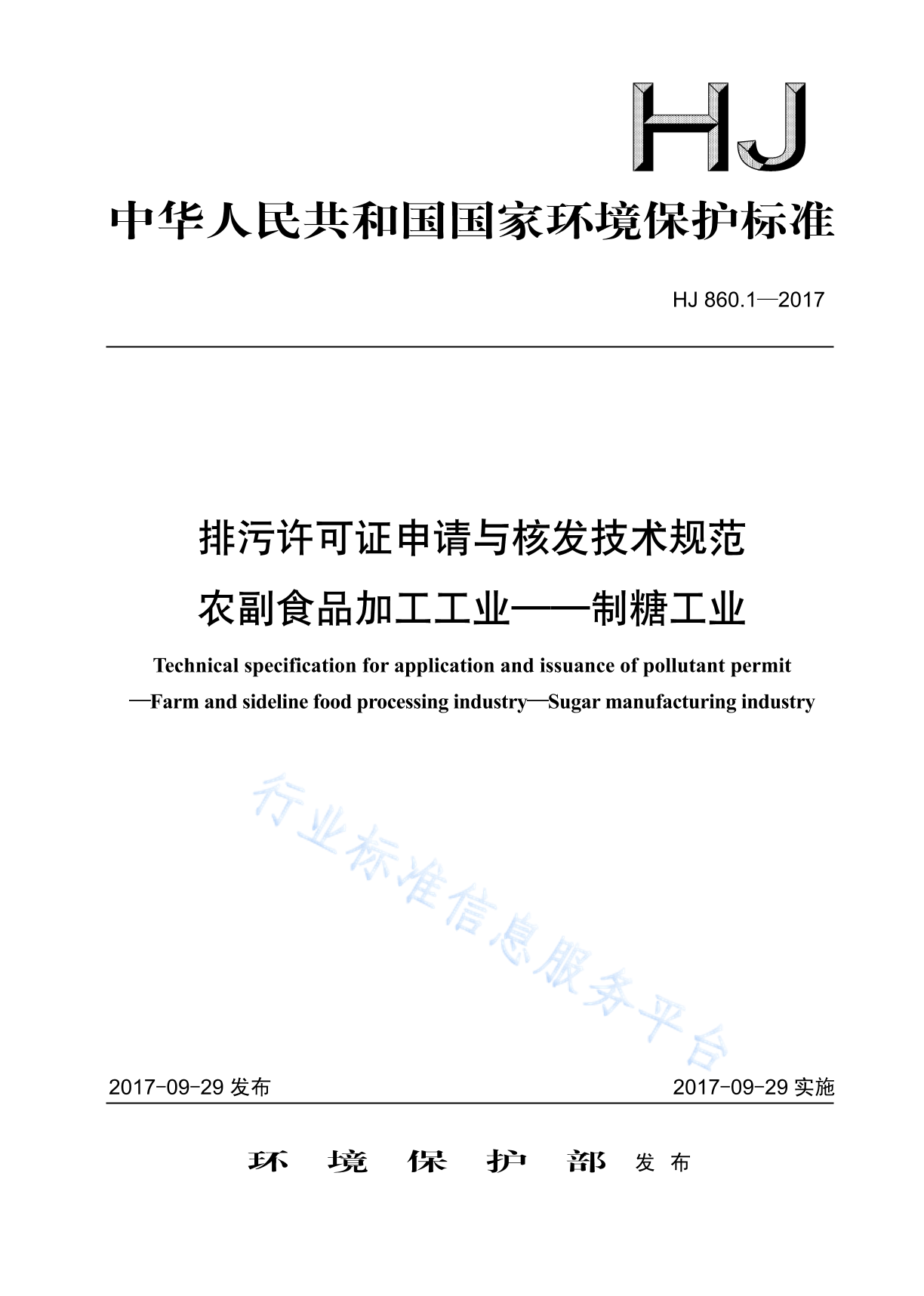 HJ 860.1-2017 排污许可证申请与核发技术规范 农副食品加工工业-制糖工业