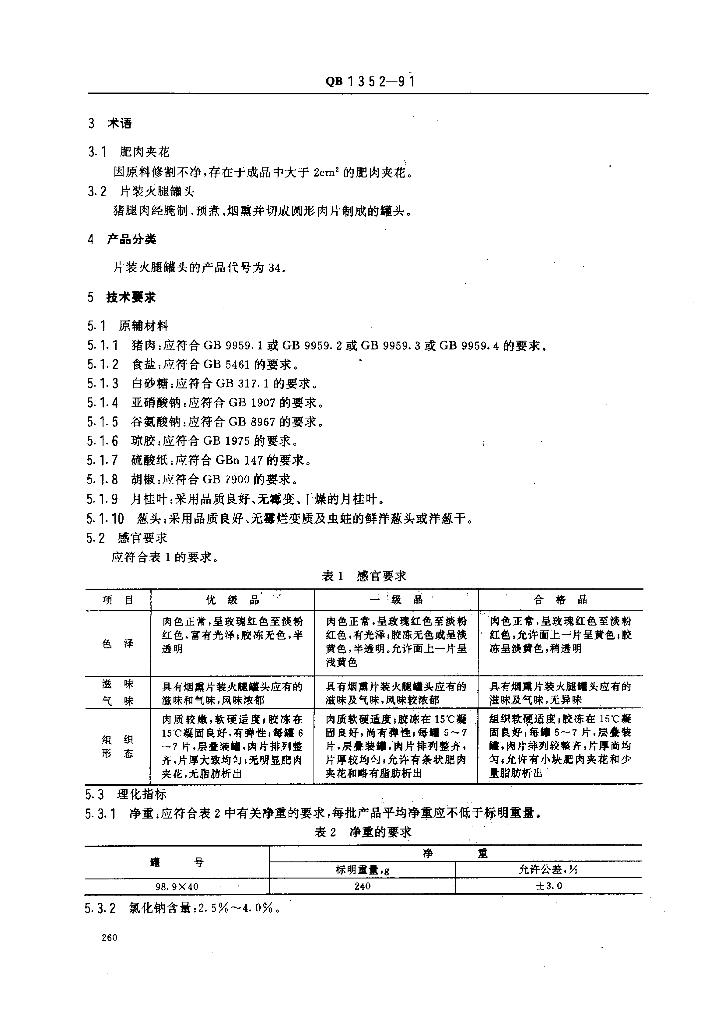 QB 1352-1991 片装火腿罐头