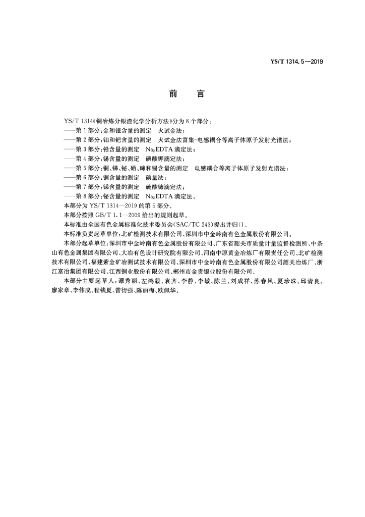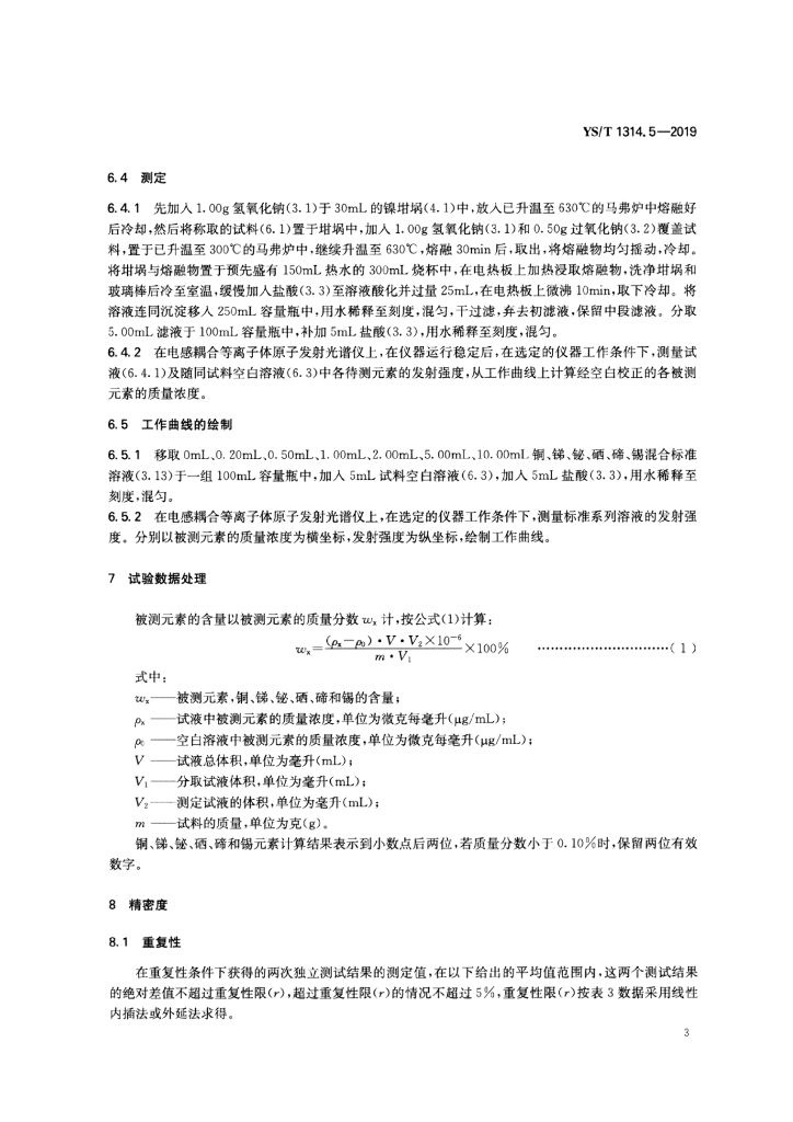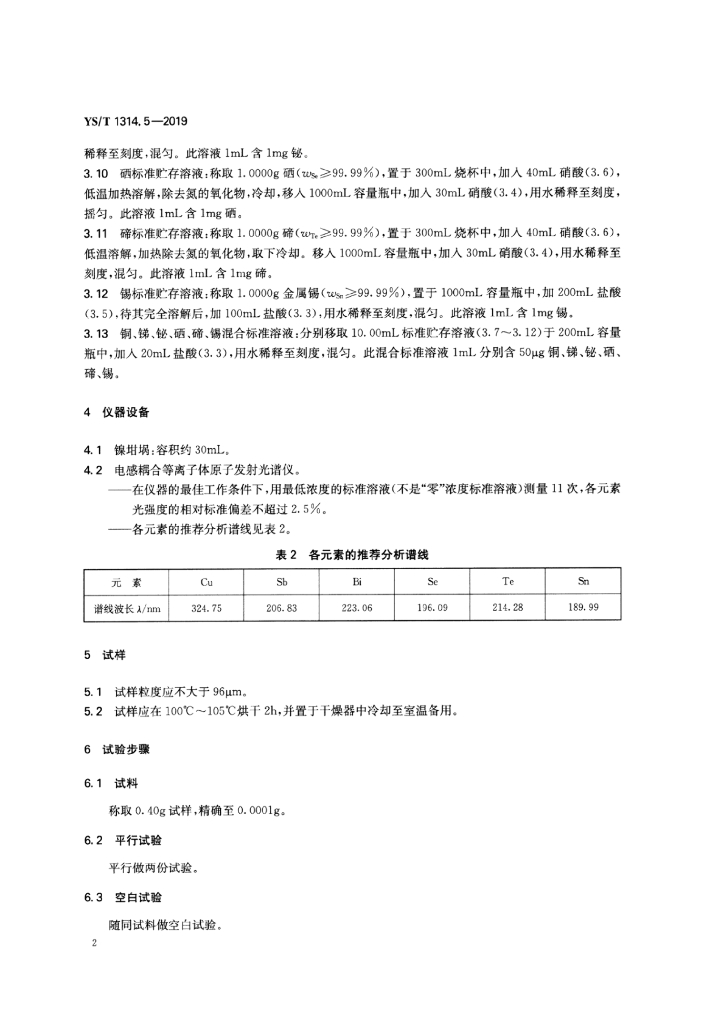 YS/T 1314.5-2019 铜冶炼分银渣化学分析方法 第5部分:铜、锑、铋、硒、碲和锡含量的测定 电感耦合等离子体原子发射光谱法