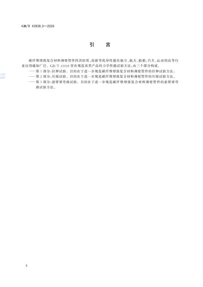 GB/T 43938.3-2026 碳纤维增强复合材料薄壁管件力学性能试验方法 第3部分:悬臂梁弯曲试验