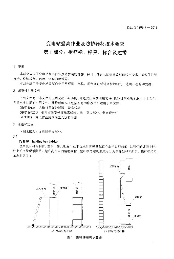 DL/T 1209.1-2013 变电站登高作业及防护器材技术要求 第1部分:抱杆梯、梯具、梯台及过桥