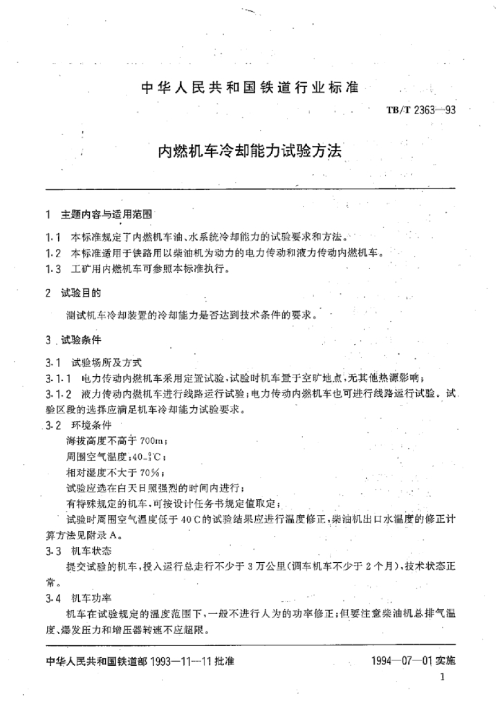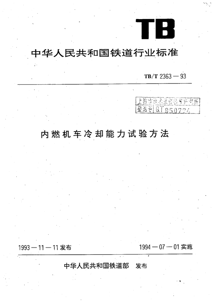 TB/T 2363-1993 内燃机车冷却能力试验方法