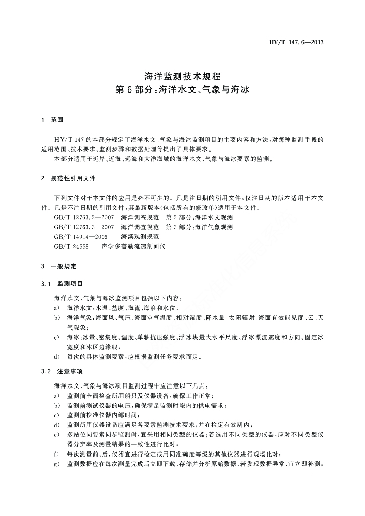 HY/T 147.6-2013 海洋监测技术规程 第6部分:海洋水文、气象与海冰