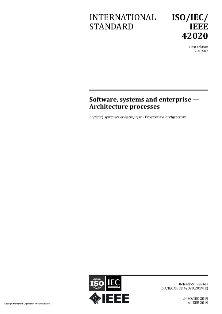 ISO/IEC/IEEE 42020-2019 软件、系统和企业 体系结构过程