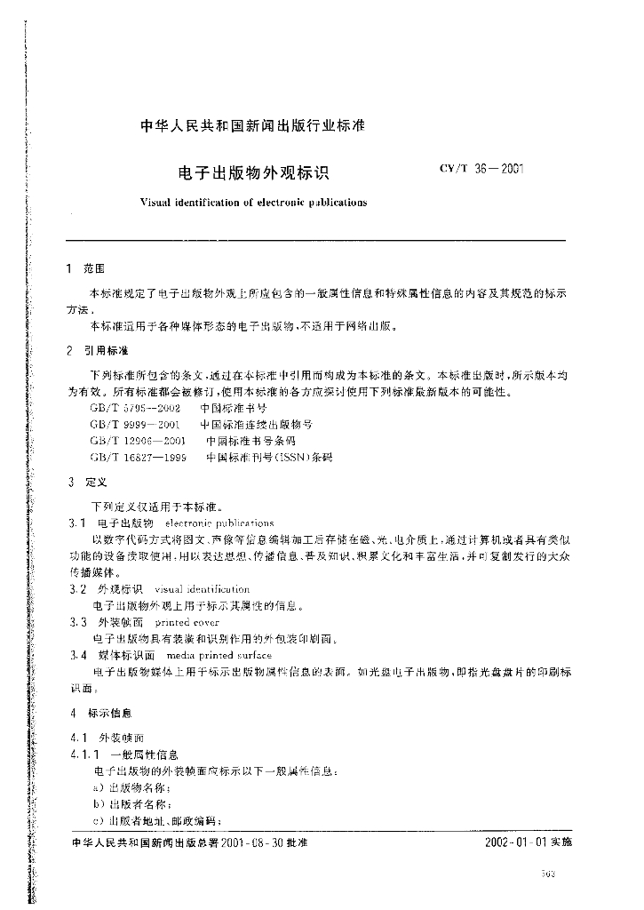 CY/T 36-2001 电子出版物外观标识