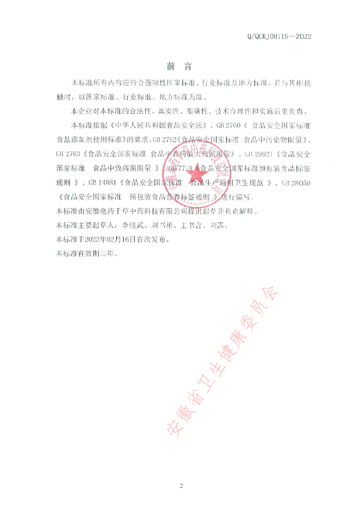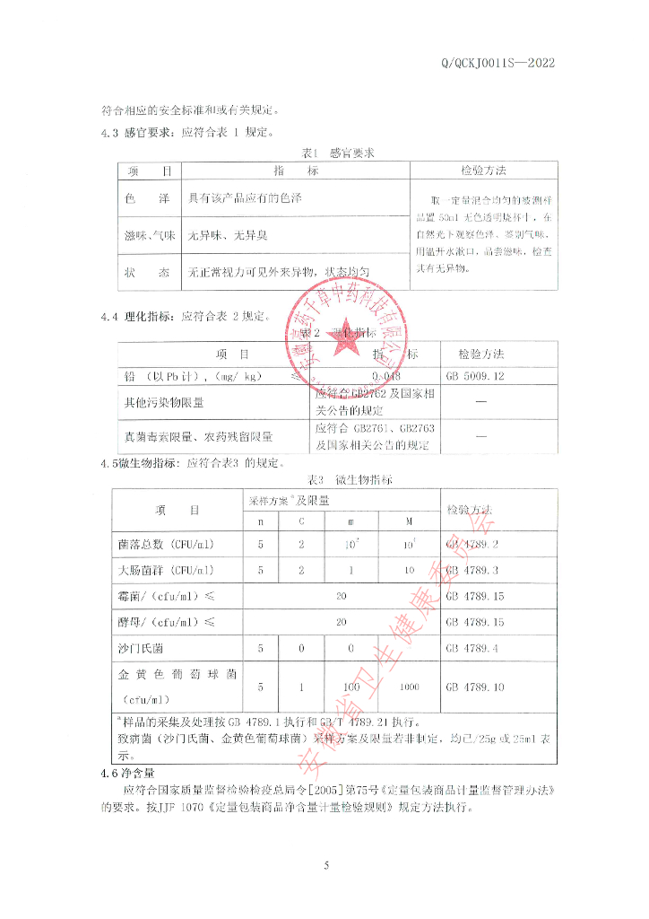 Q/QCKJ 0011S-2022 蜂王胎饮