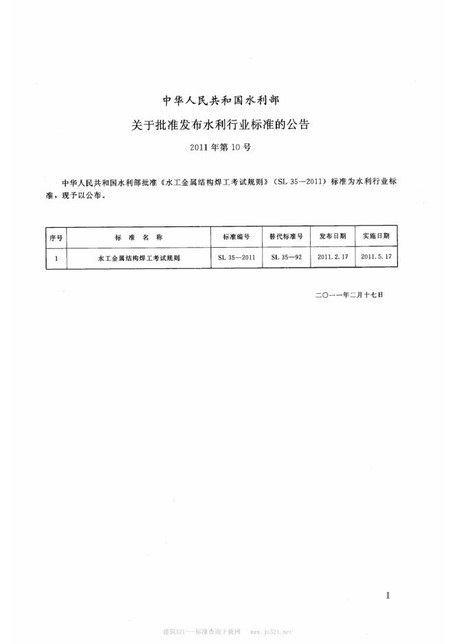 SL 35-2011 水工金属结构焊工考试规则