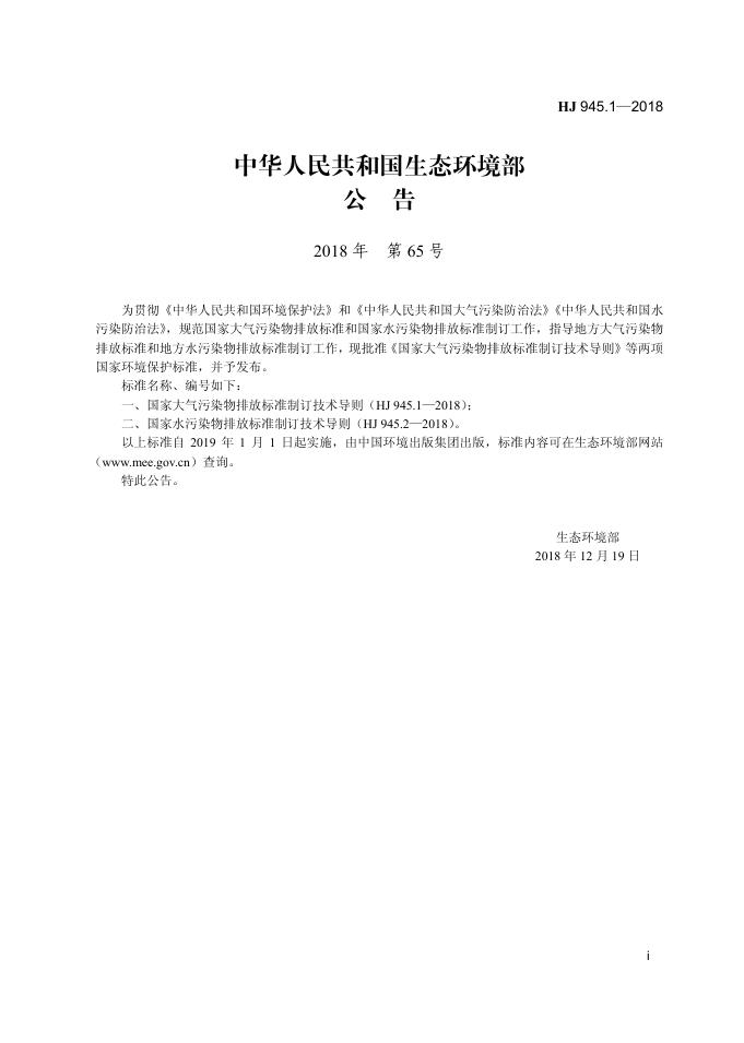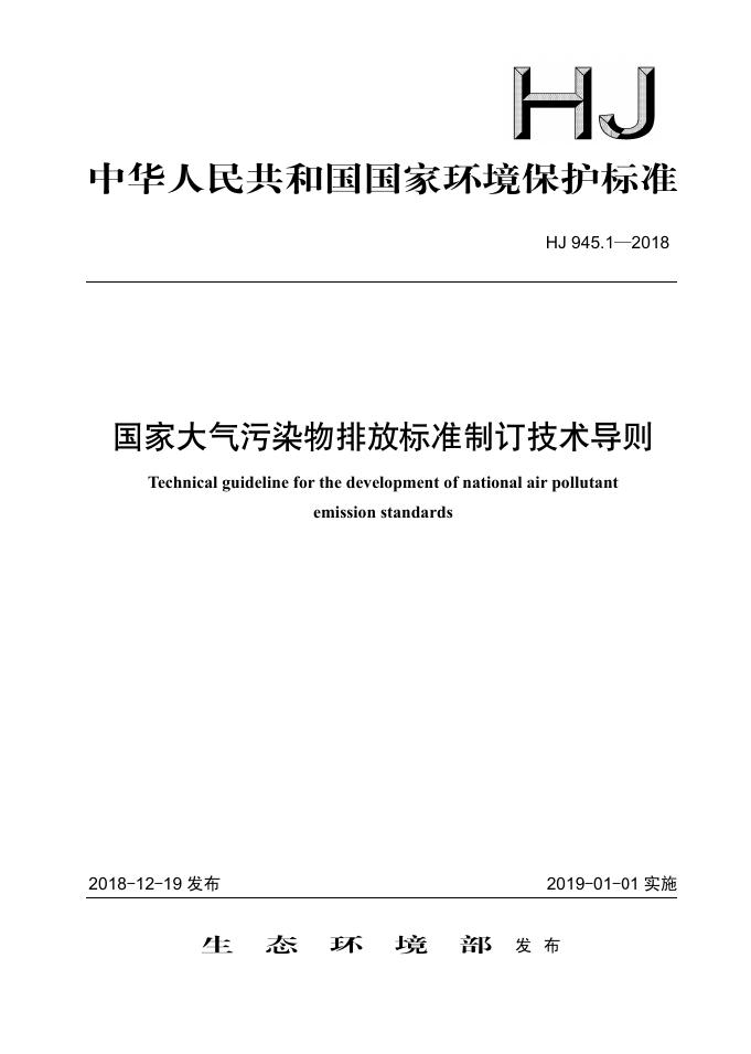 HJ 945.1-2018 国家大气污染物排放标准制订技术导则