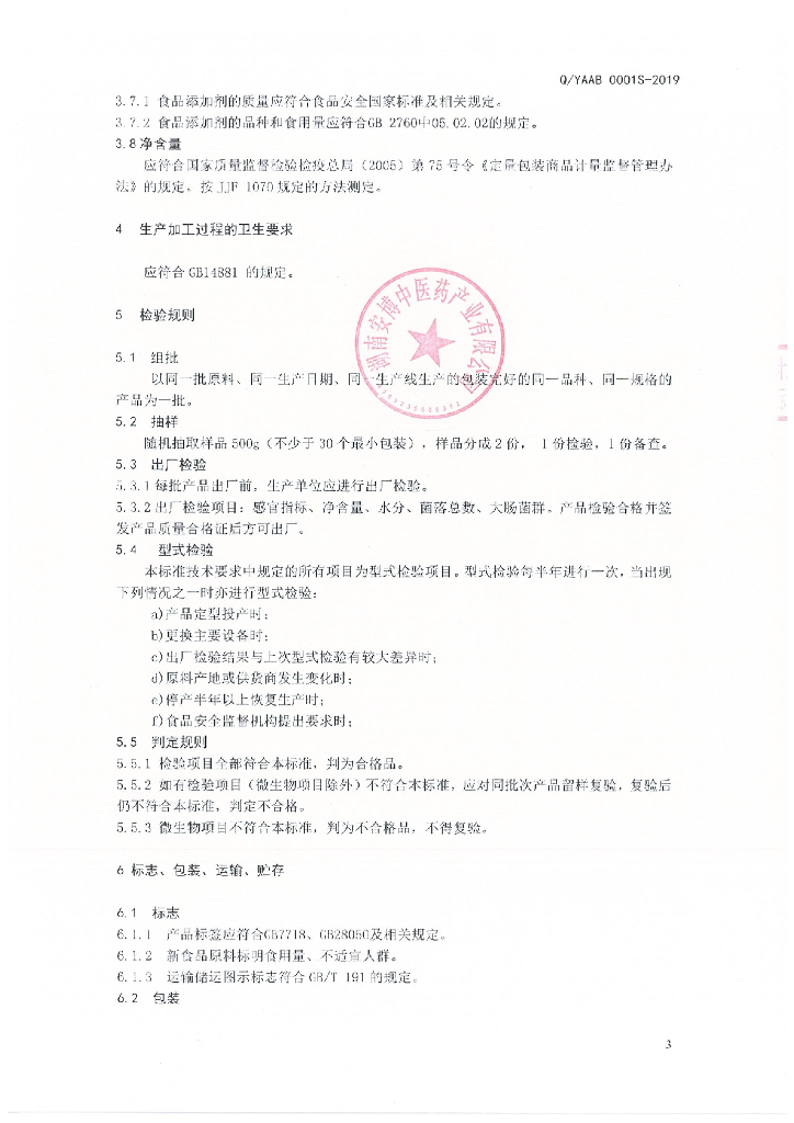 Q/YAAB 0001S-2019 鹿参肽压片糖果
