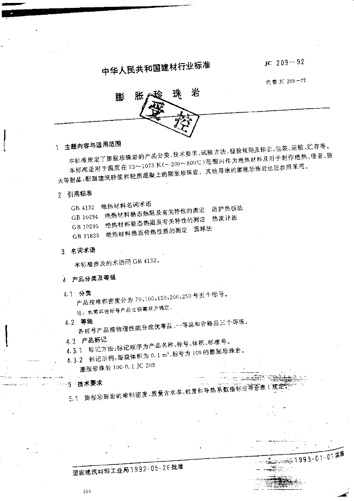 JC 209-1992 膨胀珍珠岩