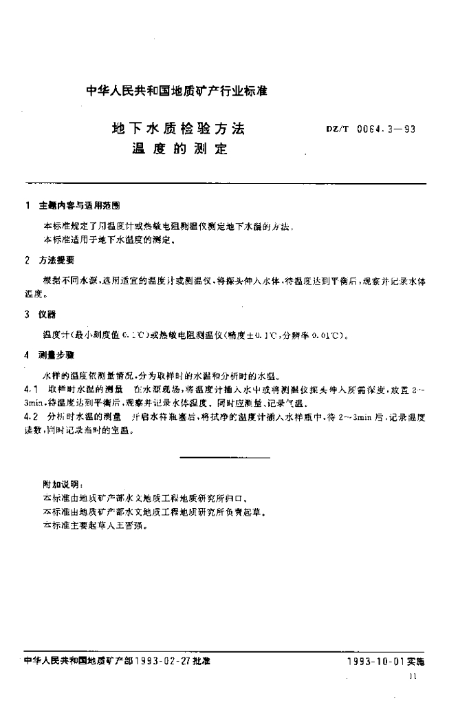 DZ/T 0064.3-1993 地下水质检验方法温度的测定