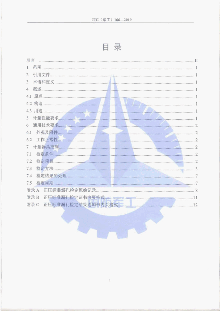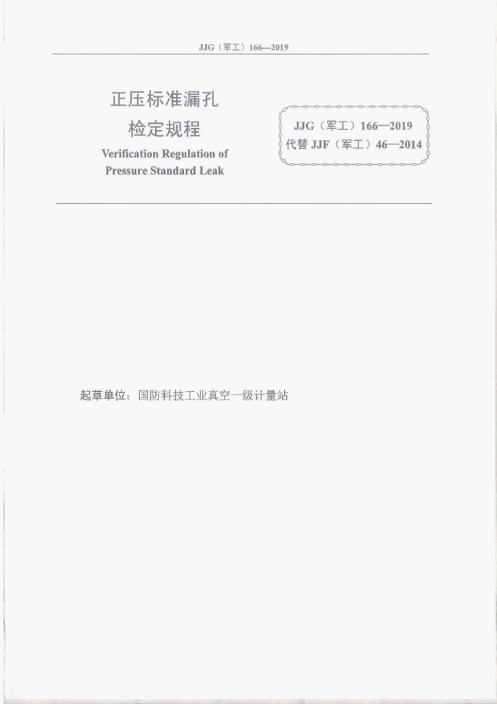 JJG(军工)166-2019 正压标准漏孔检定规程