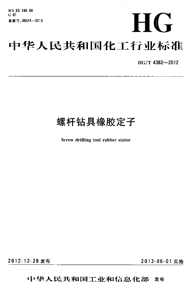 HG/T 4382-2012 螺杆钻具橡胶定子