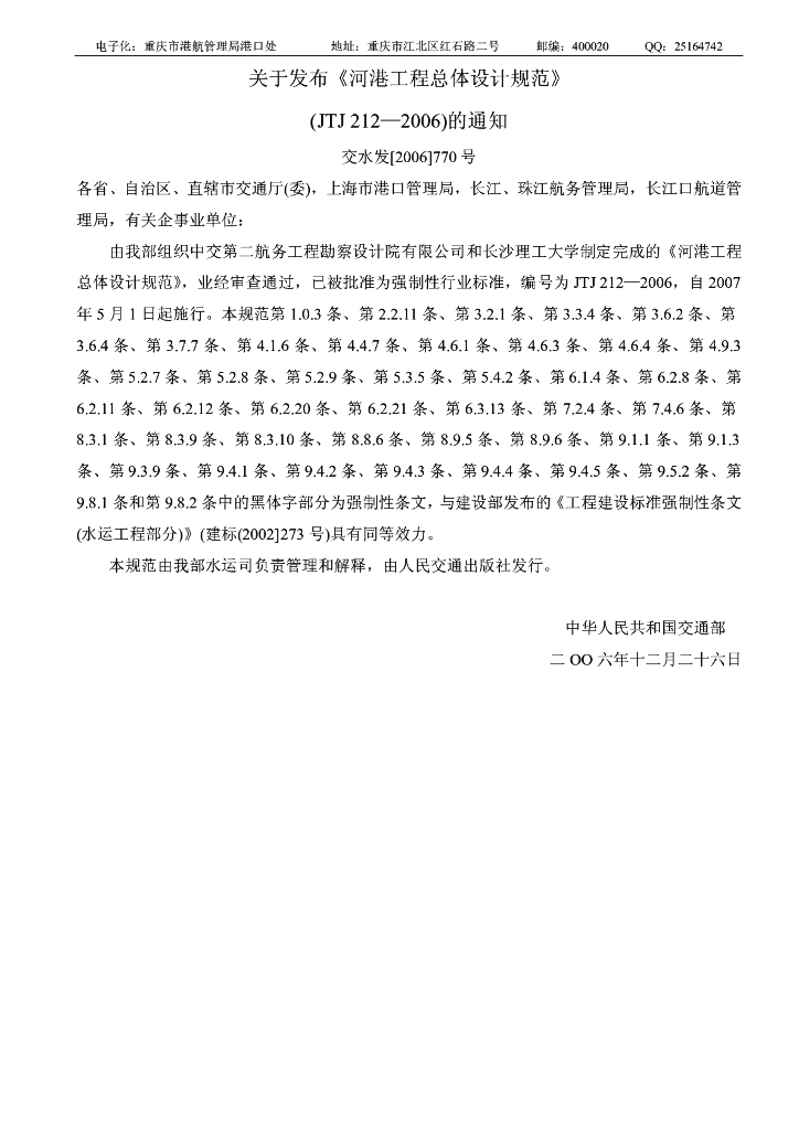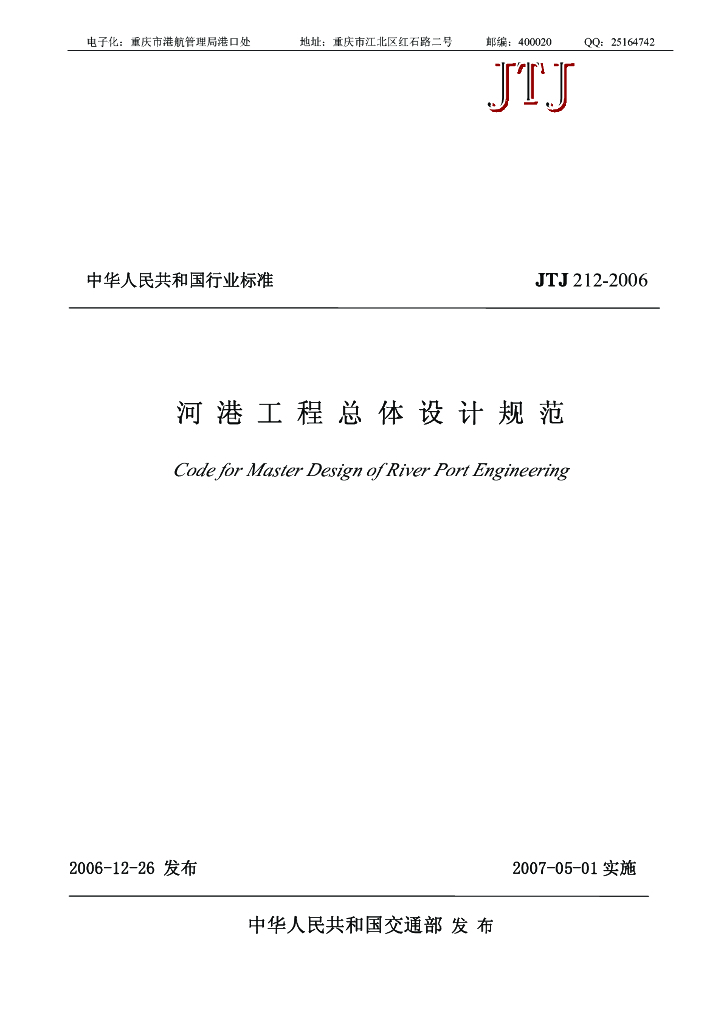 JTJ 212-2006 河港工程总体设计规范(附条文说明)