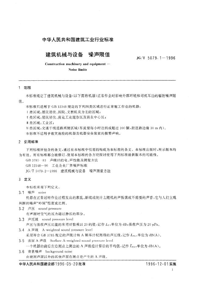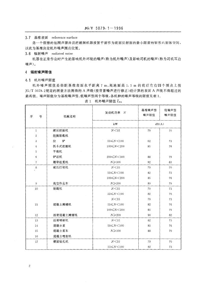 JG/T 5079.1-1995 建筑机械与设备噪声限值