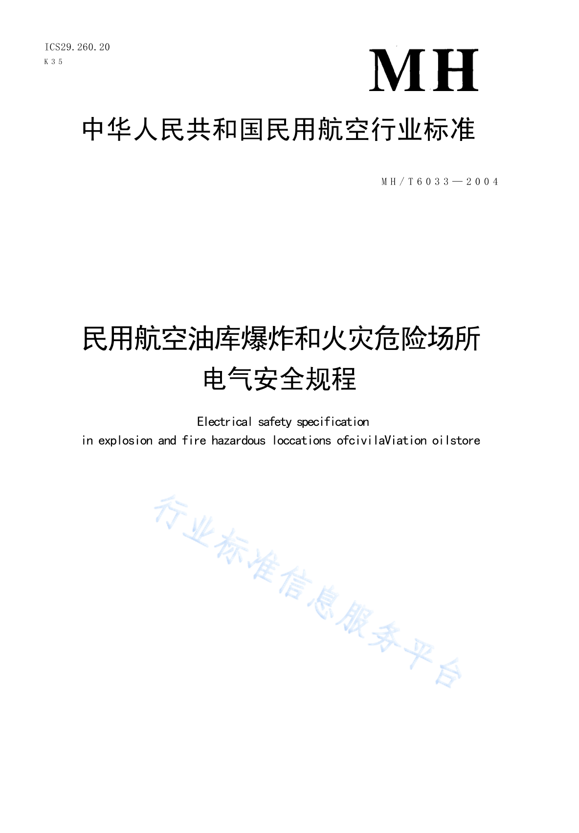 MH/T 6033-2004 民用航空油库爆炸和火灾危险场所电气安全规程