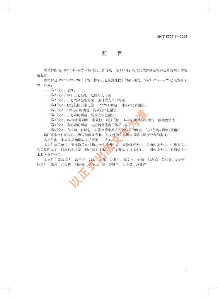 SN/T 5727.4-2025 出口林下三七检验规程 第4部分:稳定氮同位素比值(15N/14N)测定 同位素比质谱法