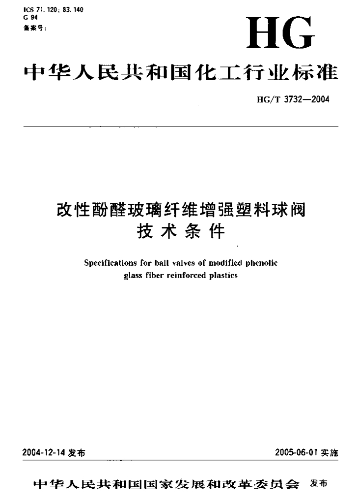 HG/T 3732-2004 改性酚醛玻璃纤维增强塑料球阀技术条件