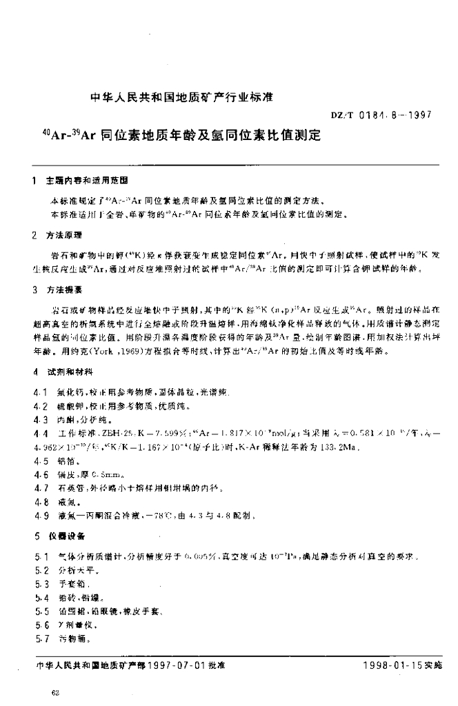 DZ/T 0184.8-1997 40Ar-39Ar 同位素地质年龄及氩同位素比值测定