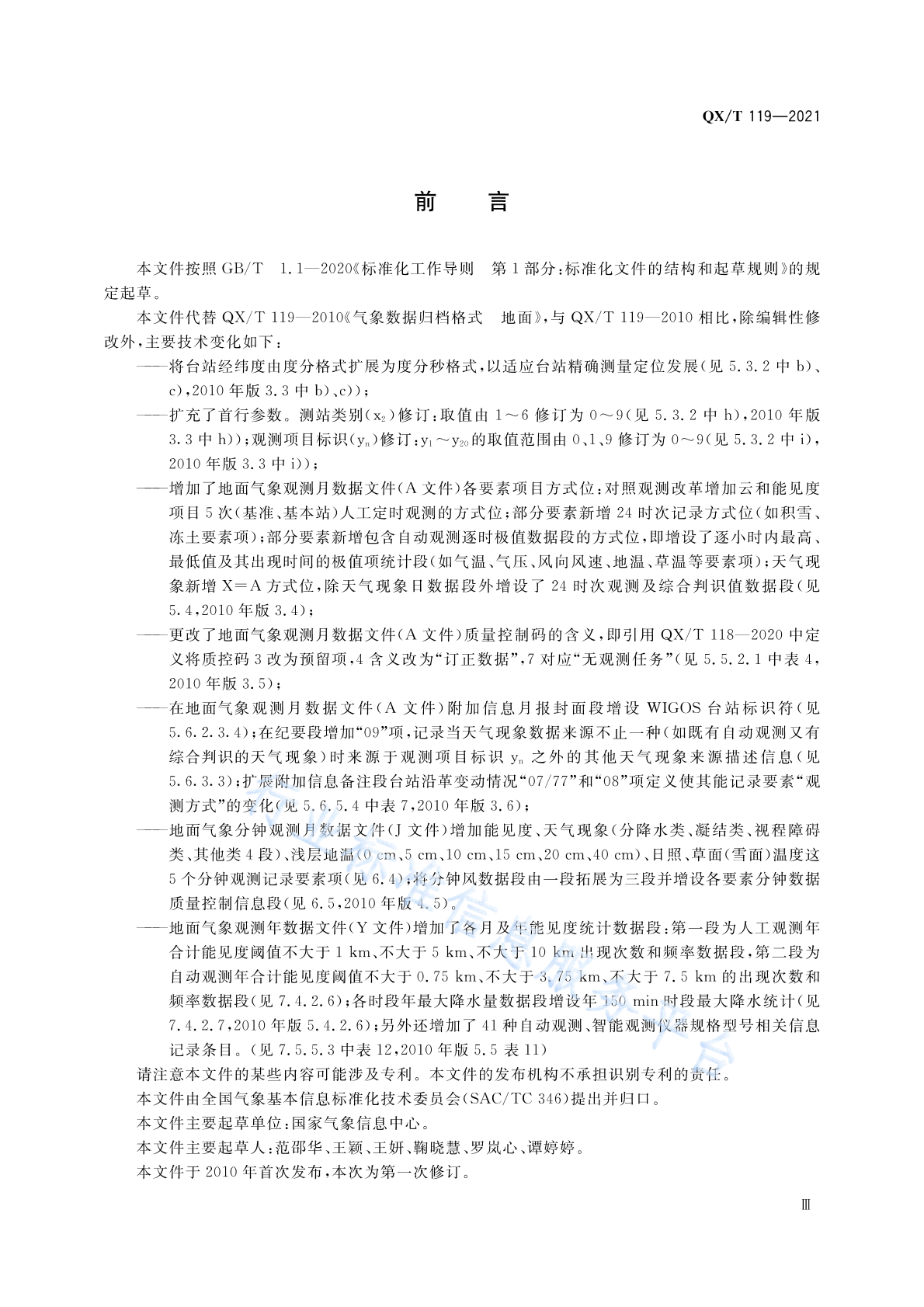 QX/T 119-2021 气象数据归档格式 地面