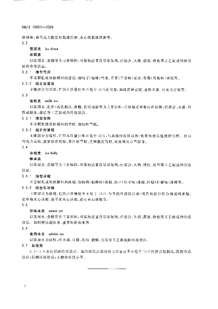 SB/T 10007-2008 冷冻饮品 分类