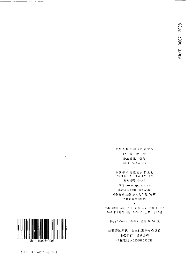 • 代替标准:SB/T 10007-1999