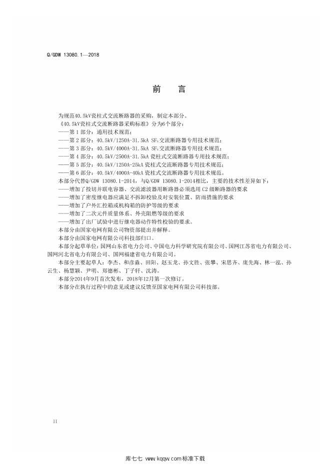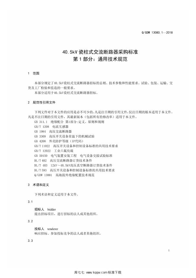 Q/GDW 13080.1-2018 40.5kV瓷柱式交流断路器采购标准 第1部分:通用技术规范