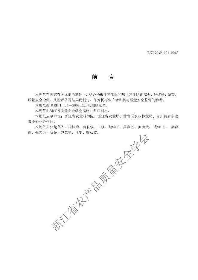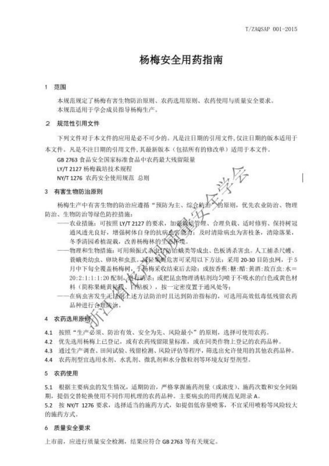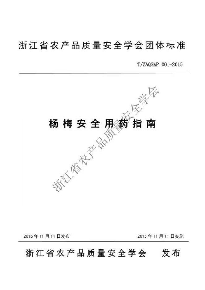 T/ZAQSAP 001-2015 杨梅安全用药指南