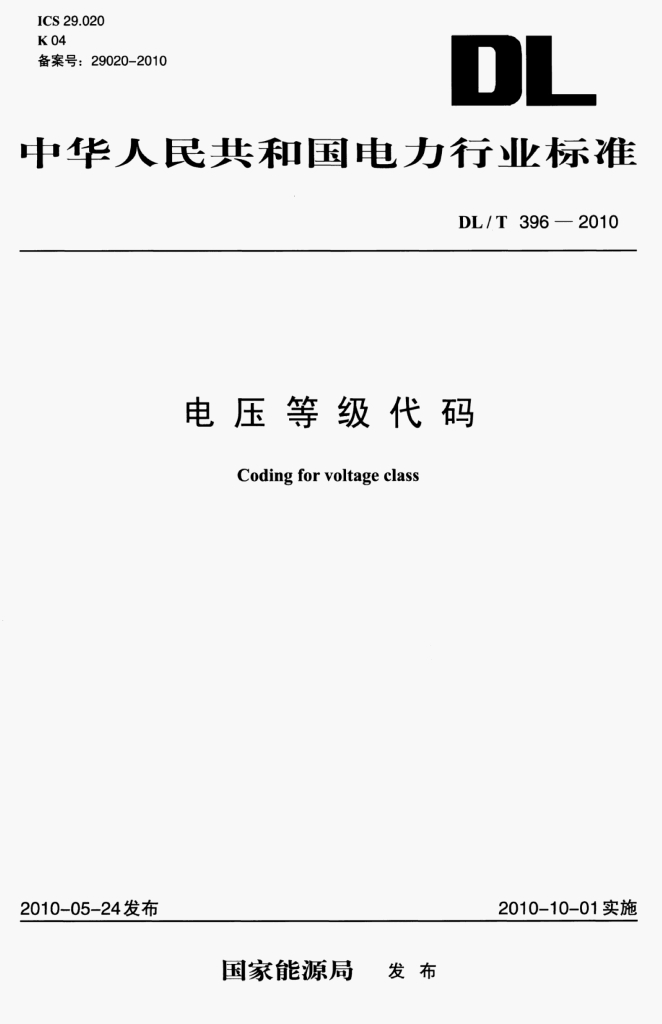 DL/T 396-2010 电压等级代码